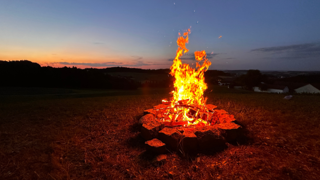 夜の方が炎がよく見えるので、夕方以降がおすすめ。