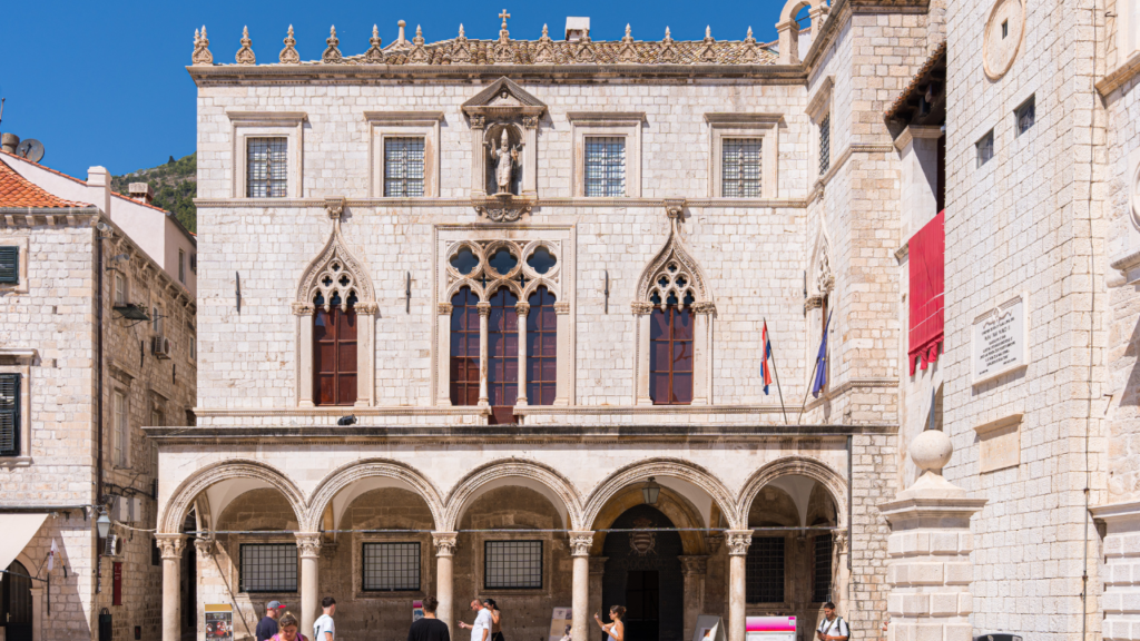 旧市街のメインストリート「プラツァ通り」を歩いていると、突き当たりに現れるのがスポンザ宮殿。