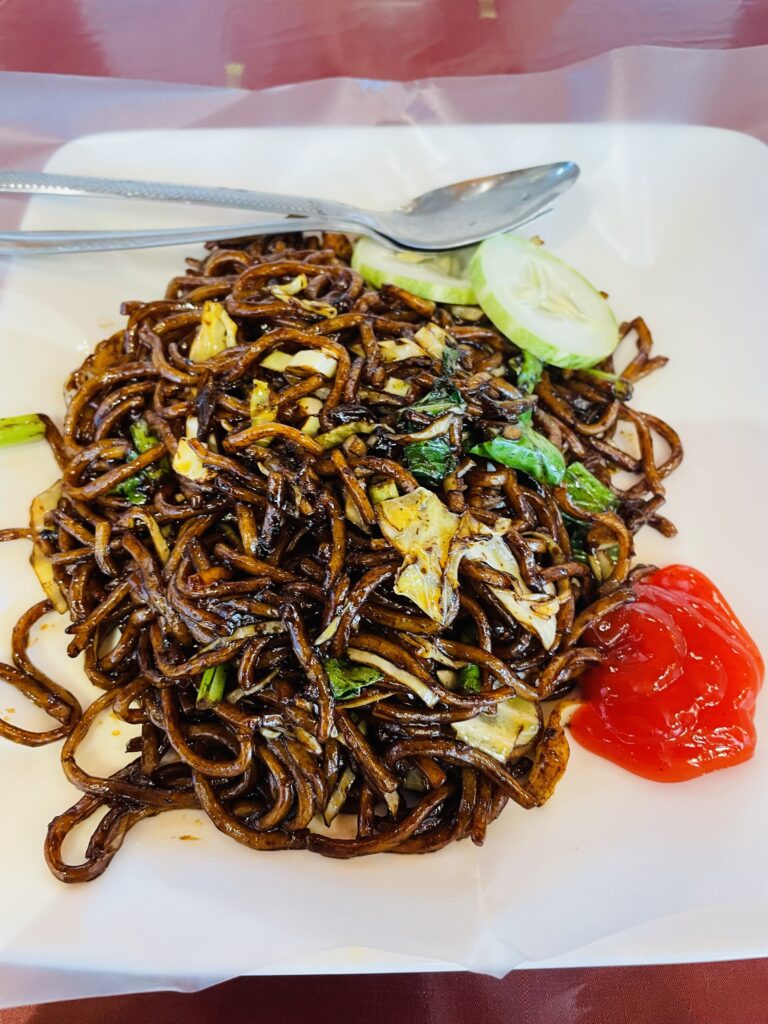 日本でいう焼きそばに近いけど、スパイスとケチャップマニス(甘い醤油)の風味が効いていて、全然違う食べ物だ。